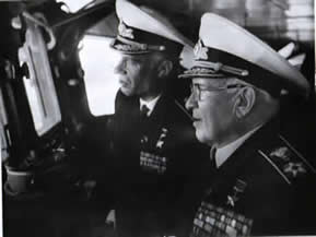 | С.Г.Горшков очень любил, когда его встречал другой С.Г. – Ролев, командир ЗРД | ![]() |