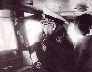 А.П.МИХАЙЛОВСКИЙ:“…Много было и других главкомовских загадок в этом походе. Так, он наотрез отказался покидать ходовую рубку и мостик крейсера для того, чтобы спуститься на ГКП, расположенный внутри корпуса, под многослойной конструктивной защитой бортов и палуб… |